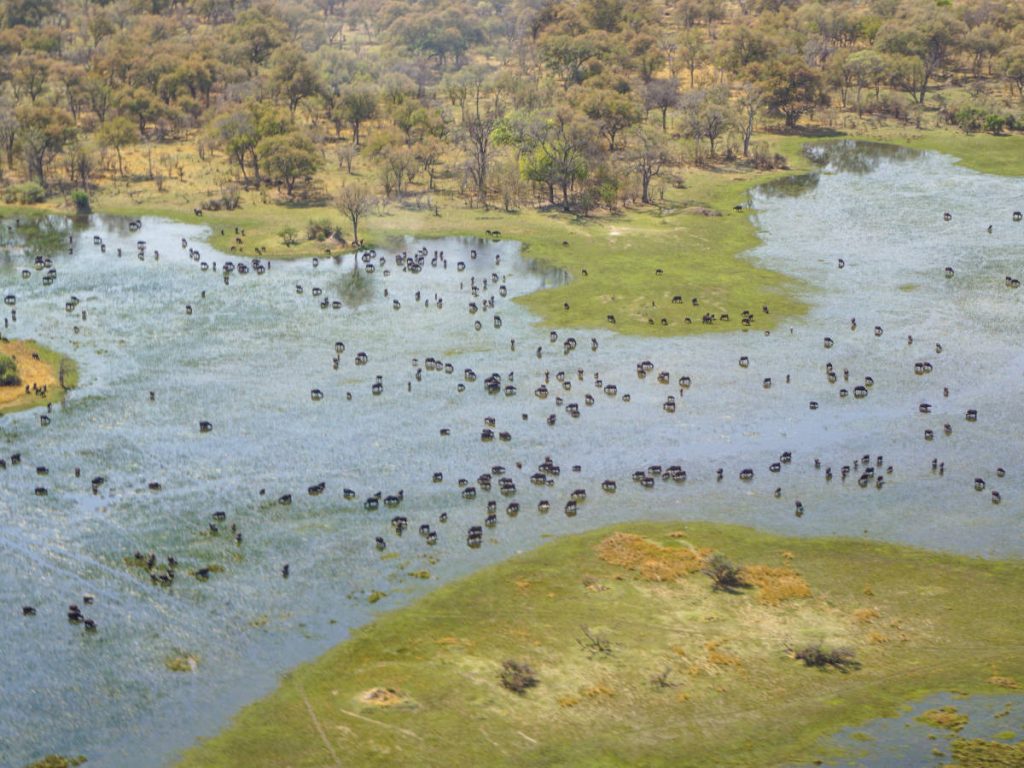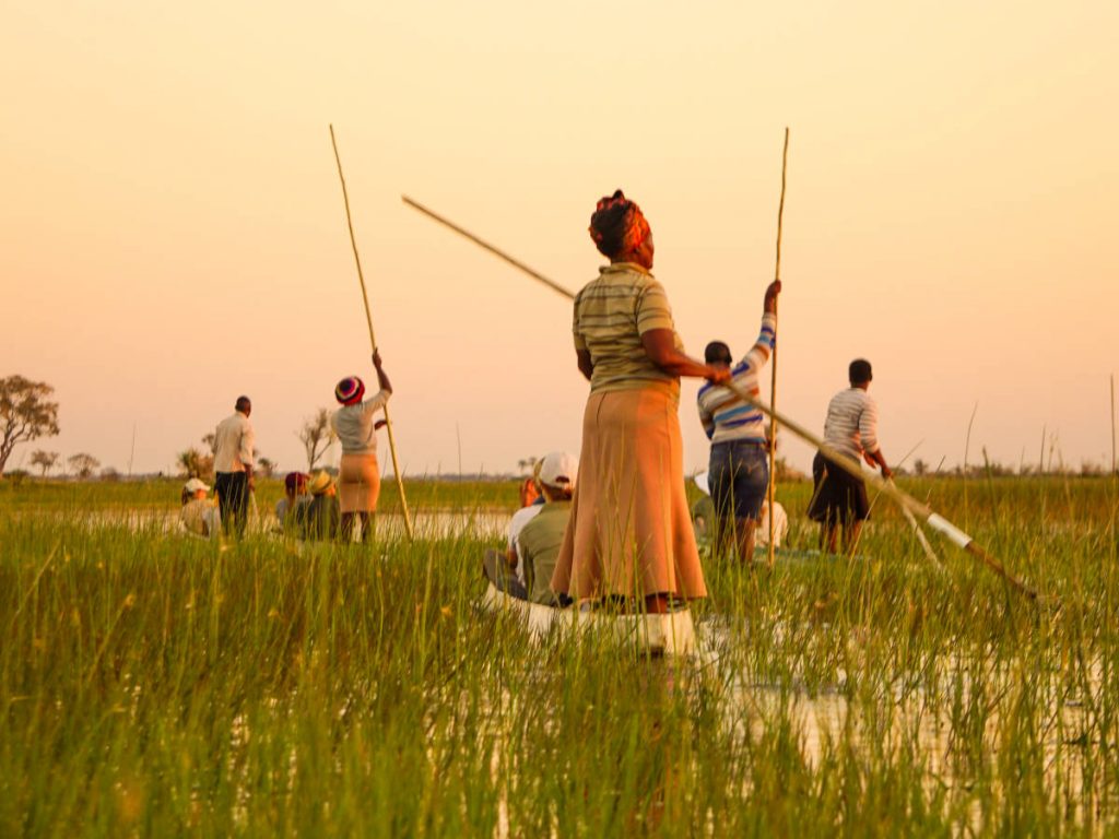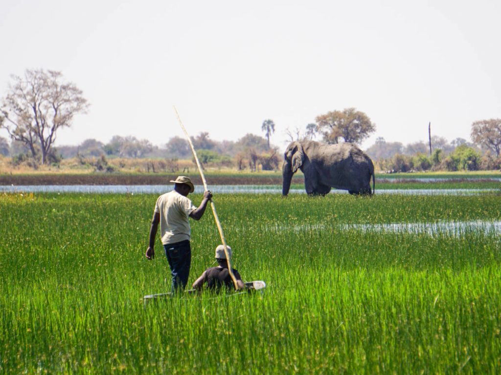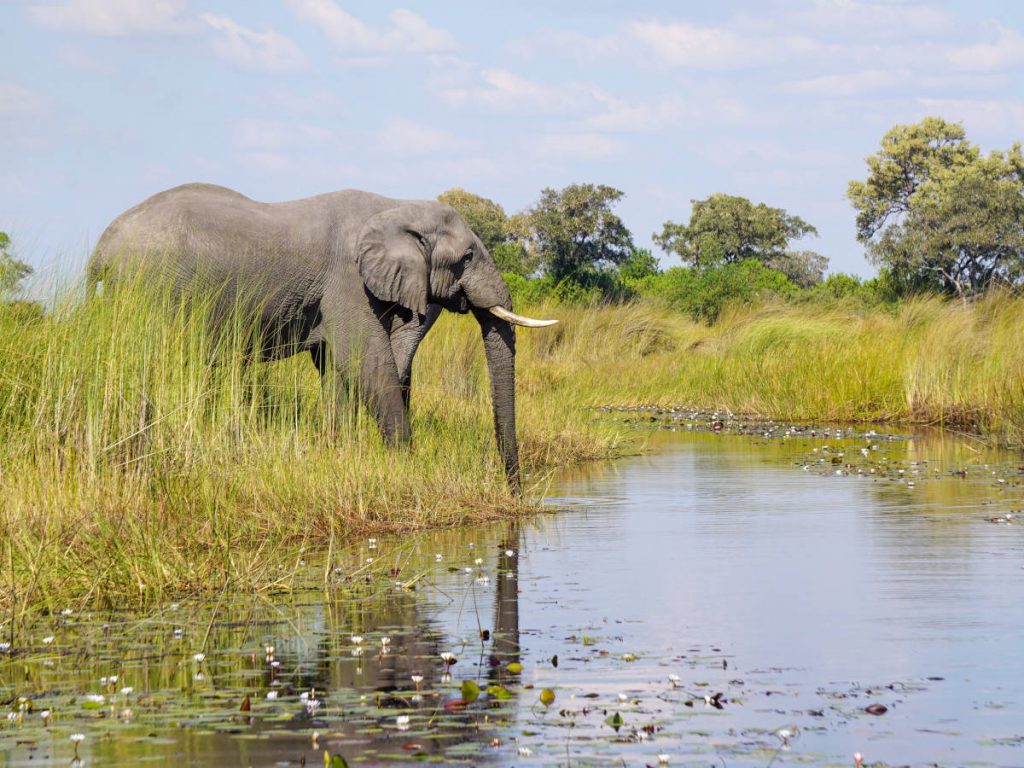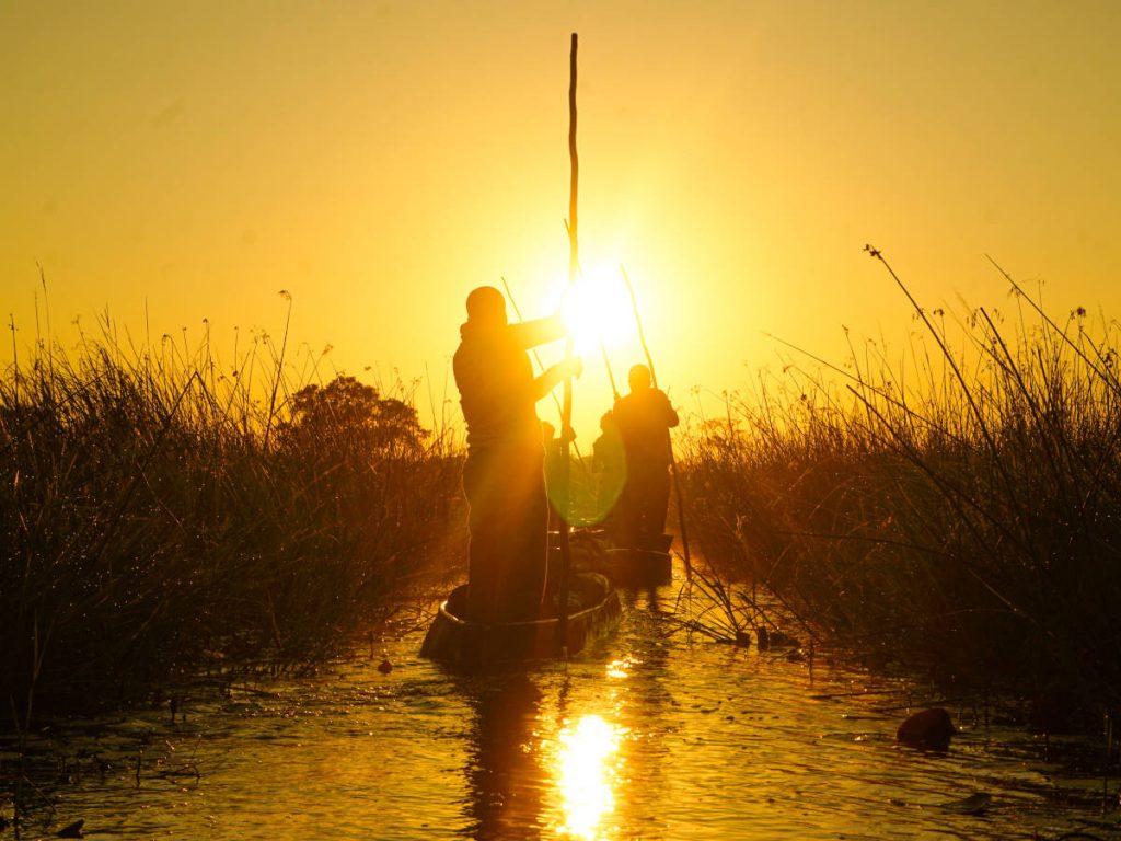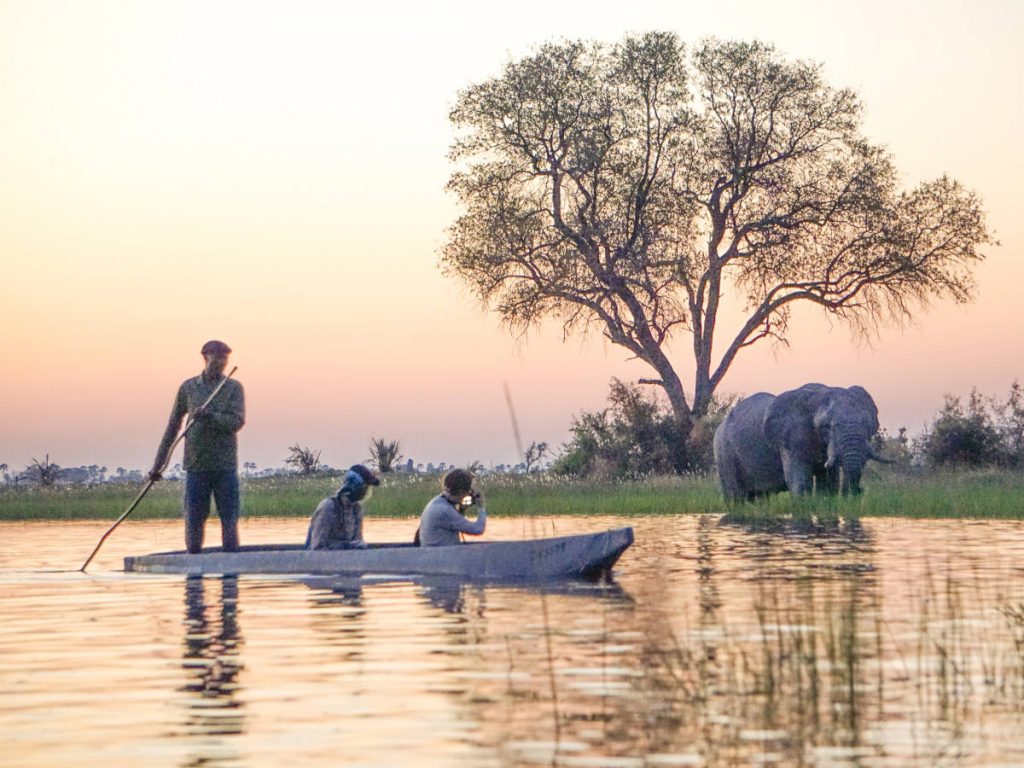 In der Regenzeit fällt im Hochland Angolas besonders viel Regen, der jetzt im Mai – mit einigen Monaten Verzögerung – im Okavango-Delta einfließt. So bildet sich das größte Binnendelta der Welt. Der Wasserspiegel steigt also, während in der Umgebung die Trockenzeit bereits Einzug gehalten hat. Die Tiere bedanken sich, und so findest du hier wirklich alle Arten afrikanischer Wildtiere, die du dir vorstellen kannst. Wir stürzen uns also mitten hinein in das Abenteuer, verabschieden uns von der Zivilisation und fahren zum nördlichsten Arm des Okavango-Deltas: Dem Khwai Fluss. Hier liegt die Khwai Konzession: Einst ein Jagdgebiet, ist diese heute ein Paradebeispiel für kommunal basierten Tourismus, denn alle hier liegenden Camps werden von der lokalen Gemeinschaft betrieben und auch die Gewinne bleiben im lokalen Khwai Community Trust. Schon die Fahrt ist ein Abenteuer, dann beziehen wir unser Camp und starten ins Safari-Vergnügen. Die lokale Kultur der San bewegt sich auf den Flüssen traditionell mit Einbäumen, den sogenannten Mokoros fort. Geräuschlos gleiten wir nachmittags auf diese Art durch das Delta und halten nach Elefanten und Hippos Ausschau. Der perfekte Einstieg, der mit dem abendlichen Lagerfeuer im Camp seinen Abschluss findet.