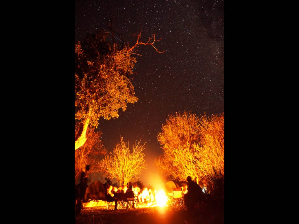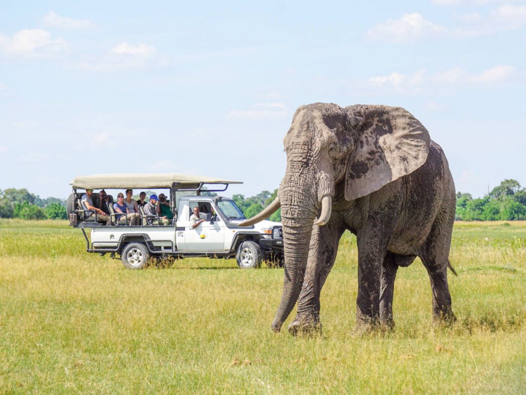 Das Moremi Game Reserve ist das Herz des Okavango-Deltas. Das älteste Wildreservat Botswanas wurde einst von einer Einheimischen gegründet. Hier leben nicht nur die „Big Five“ Löwe, Elefant, Nashorn, Büffel und Leopard, sondern auch Giraffen, Zebras, Hyänen, Geparden, Hippos und besonders viele Antilopen-Arten. Auf Safari sein bedeutet auch immer, Geduld und Glück mitzubringen, aber wir haben den gesamten Tag Zeit und die lokalen Guides wissen, wie man Tiere aufspürt. Wir pirschen nicht nur durch das Moremi Reservat, sondern sind in unseren offenen Safari-Fahrzeugen auch in der Khwai Konzession unterwegs, in der es mehr Wasser und damit ebenfalls eine hohe Tier-Dichte gibt. Zurück im Camp wartet das Abendessen und ein Abend am Lagerfeuer auf uns. Was für ein Wildnis-Tag!
