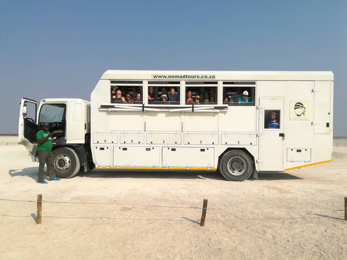 Die Strecken sind weit, und so verbringen wir viel Zeit im Truck. Dabei können wir die Sitzordnung natürlich stets ändern, und wie bereits beschrieben gibt es vorne im Truck sogar eine kleine Sitz-Ecke. Unterwegs halten wir immer mal wieder an, um uns kalte Getränke zu kaufen, ein WC aufzusuchen oder uns einfach die Beine zu vertreten. Dadurch, dass wir immer gemeinsam am Truck essen und auch beim Kochen, Abwaschen und Aufbau helfen, entsteht dabei ein großes „Camp Life“ Gemeinschaftsgefühl. Die viele Zeit, die wir so unter freiem Himmel verbringen, passt einfach wahnsinnig gut zu Afrika. Da unsere Camping-Plätze immer auch Lodges sind, können wir alle die Annehmlichkeiten der Lodges genießen, die im Tagesprogramm unter „Deine Unterkunft“ genauer beschrieben sind. Es variiert also, ob wir den Abend im Camp am Lagerfeuer, oder an der Hotelbar ausklingen lassen. Lodges sind häufig sehr ansprechend gestaltet, sodass man sich hier gern aufhält. Du wirst stets vom Dreiergespann aus Fahrer, Koch und Guide (Thilo) begleitet.